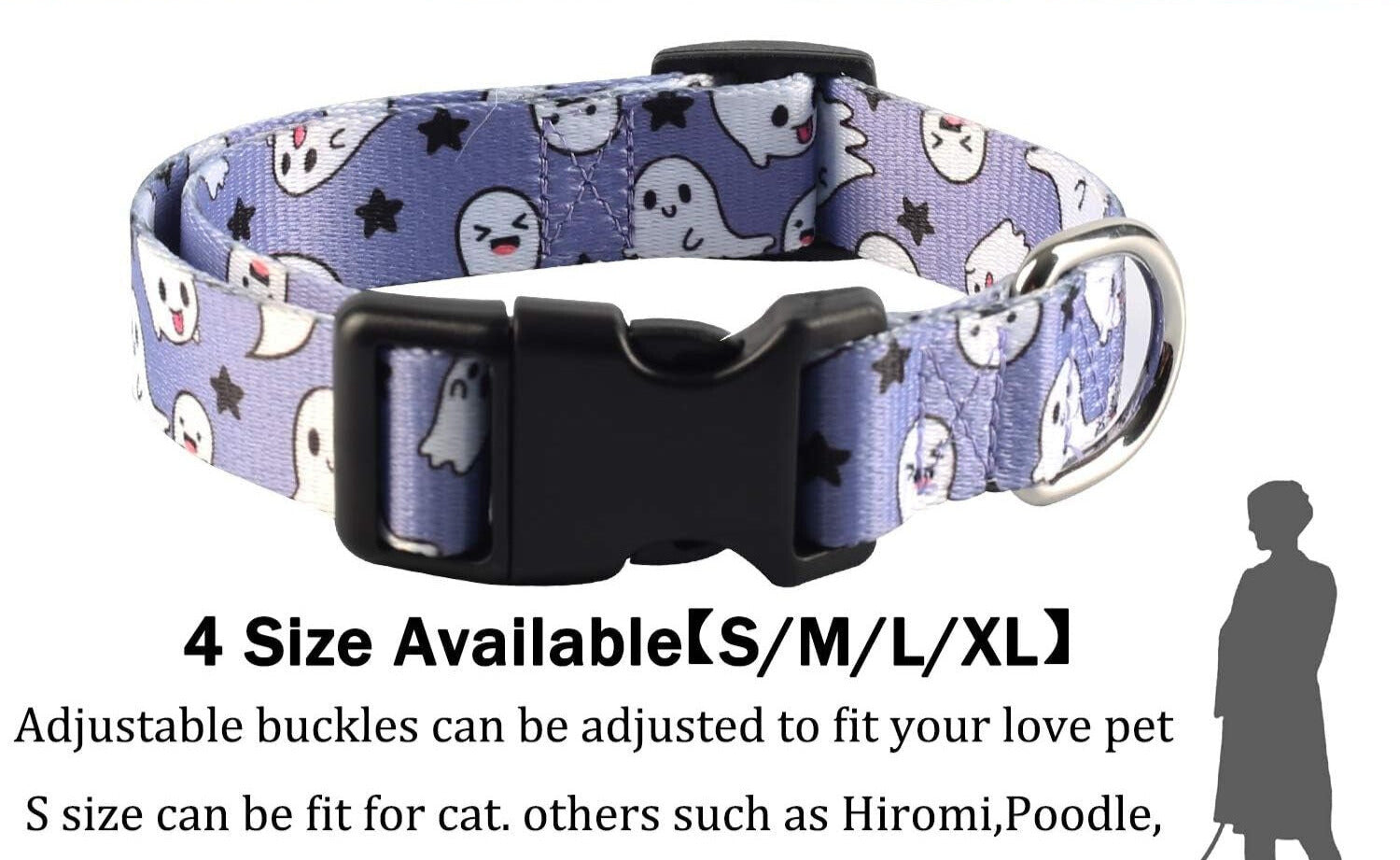 The holiday-themed collar features playful seasonal designs—complete with cheerful ghosts and vibrant fall colors—that capture the spirit of Halloween and beyond. Made from durable, pet-friendly materials, the collar provides comfort while standing up to everyday use.